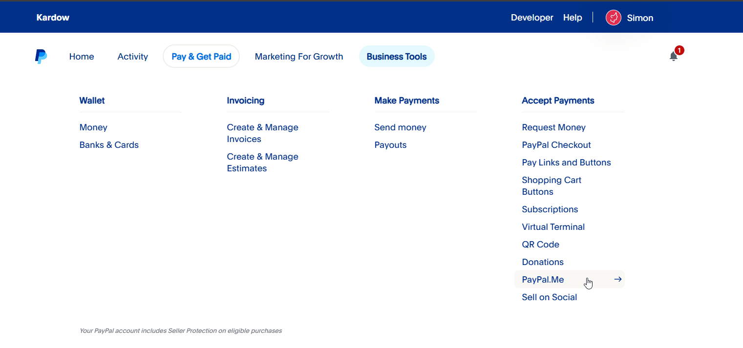 Create a paypal.me account